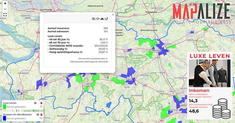Start vandaag nog met het maken van jouw omgevingsanalyse. Mapalize helpt je met het in kaart brengen van jouw omgeving. Mapalize bevat miljoenen kenmerken voor meer dan 21.000 gebieden in Nederland.